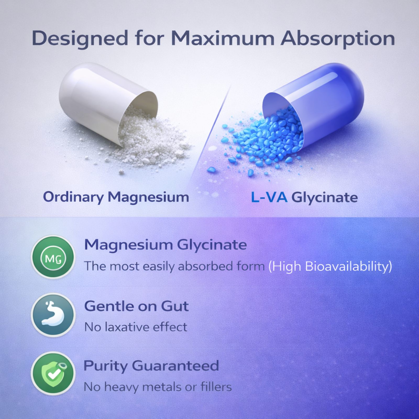 Magnesium Glycinate is a highly absorbable form of magnesium that supports muscle and nerve function, promotes relaxation, and helps maintain healthy bone density. It aids in reducing fatigue, improving sleep quality, and supporting cardiovascular health. Gentle on the stomach, this supplement is ideal for those seeking to maintain overall wellness and balance magnesium levels effectively.